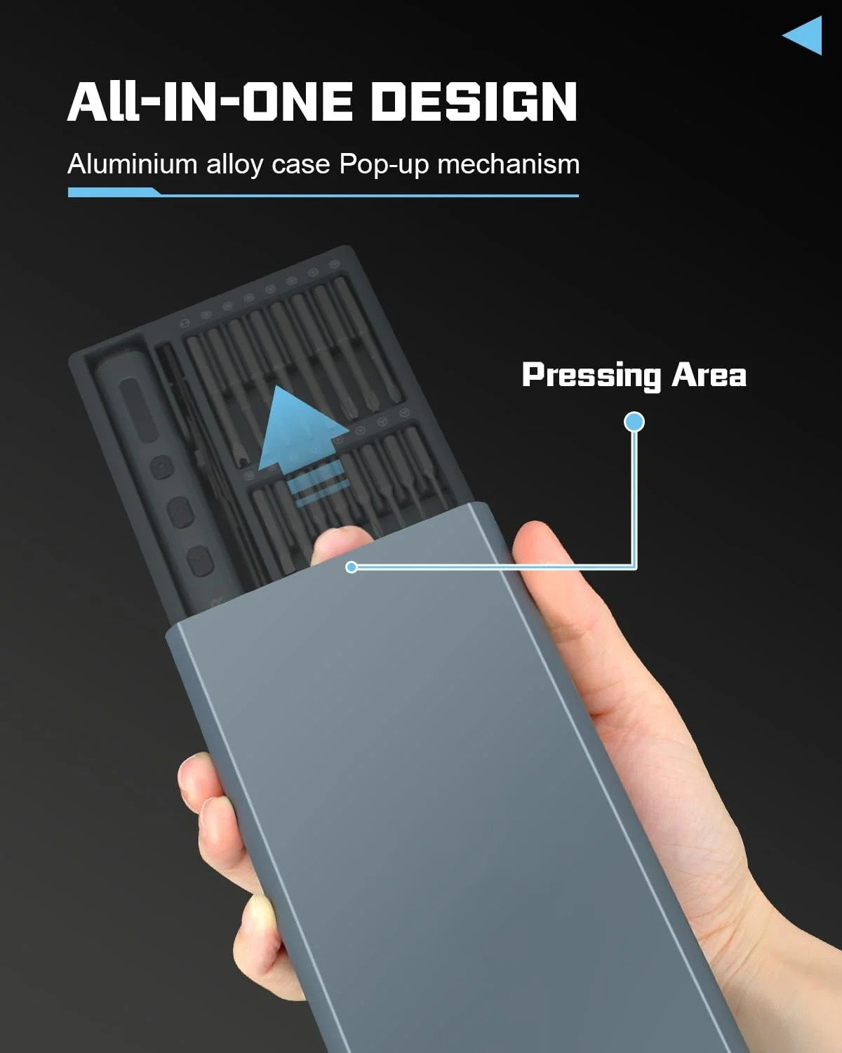 - Built-in screw magnetization device guarantees strong magnetic force, preventing dropped or lost screws.