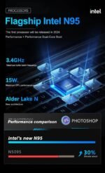 - Processor: Powered by an Intel Processor N95, this quad-core CPU boasts a base frequency of 2.0 GHz with turbo speeds up to 3.40 GHz, ensuring efficient multitasking and responsive performance.